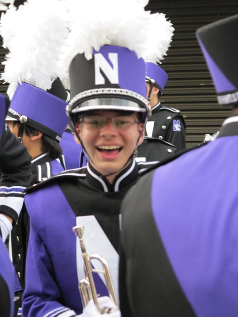 Loyola grads Robert Murphy and Alex Wenzel are gearing up for an epic contest. Alex Wenzel is attending Northwestern University this year in the engineering school, and Robert Murphy is attending Notre Dame. Both have joined their university marching bands and next year NU and Notre Dame will be playing at Wrigley field. I am rooting for NU (I’m an NU Alumni), but my dad went to Notre Dame, so it is getting personal. Enjoy photos of Alex (Wildcats) and Robert (Fighting Irish) below.