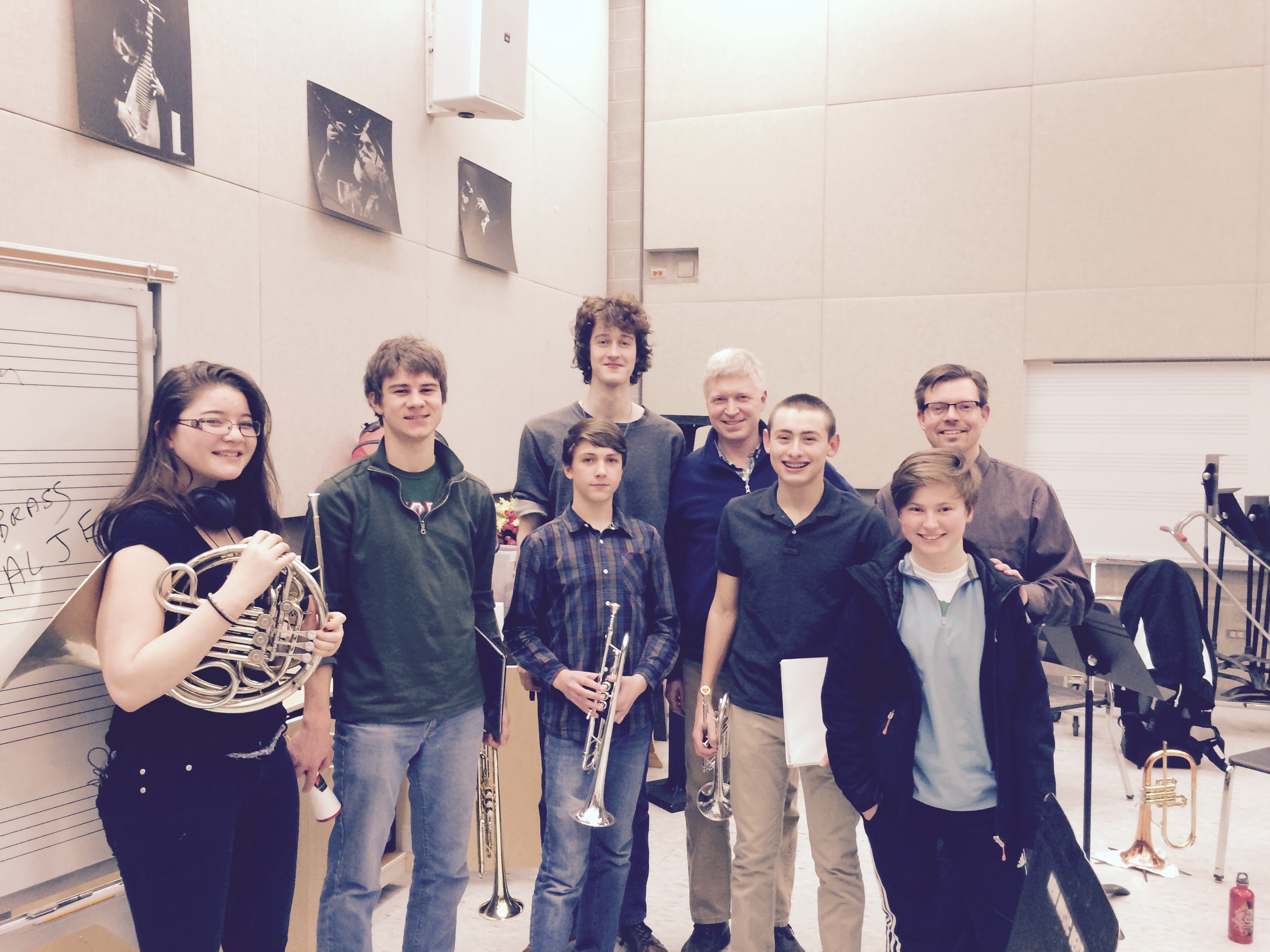 Francisco Espinoza, Imogen Eyler, Paul Hletko, John Kinne, Victoria Seliger, Daniel Vargas, and Jefferson Wenzel who participated in this year’s Chicago Brass Festival at NEIU. Brass for Beginners® students from Lincoln Elementary also gave a presentation and everyone had a great time.